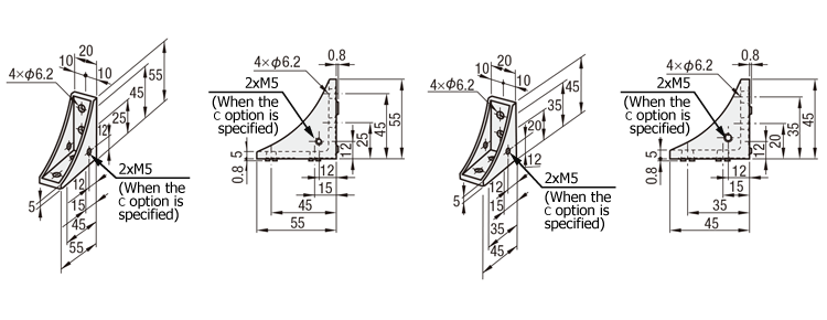 ■ เจาะรูเพื่อติดตั้งฝาครอบ (-C) ของเหล็กฉาก 90 องศา