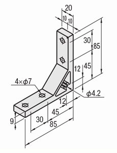 ฉากยึดแบบหนาอัดขึ้นรูป สำหรับซีรีส์ 6 (ร่องกว้าง 8 มม.) แบบ 1 ร่อง, รูติดตั้ง 4 รู