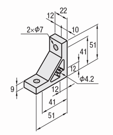 | ข้อต่อฉากแบบมีปุ่มนูน | ・ข้อต่อแบบมีปุ่มนูนทำจากวัสดุ ADC12 โดยการหล่อขึ้นรูป โดยทั่วไปจะไม่ผ่านการอโนไดซ์ และมีราคาถูกกว่าข้อต่อฉากชนิดรีดที่ขนาดเท่ากัน ・ปุ่มนูนทำหน้าที่เป็นตัวหยุดการหมุนระหว่างการยึด ทำให้งานติดตั้งง่ายขึ้น ・มีเหล็กฉาก 90 องศาหลากหลายแบบพร้อมฟังก์ชันเพิ่มเติม |