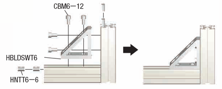 | สลักเกลียวและน็อต ที่ใช้ได้ รวมอยู่ด้วย | SET SST (สแตนเลส) SEU (น็อตสปริงประกอบล่วงหน้า) SSU (น็อตสปริงประกอบล่วงหน้า) (สแตนเลส) SEP (น็อตสปริงหลังการประกอบ น็อตสปริงประกอบ) SSP (น็อตสปริงหลังการประกอบ น็อตสปริงประกอบ) (สแตนเลส) SEC (สลักเกลียวและน็อตประกอบแหวนรอง) | ชุดนี้รวมสลักเกลียวและน็อตที่ใช้ได้สำหรับติดเหล็กฉาก 90 องศากับโครง (เพิ่มในราคาเหล็กฉาก 90 องศา) (ตัวอย่าง) เมื่อระบุ HBLDSW6