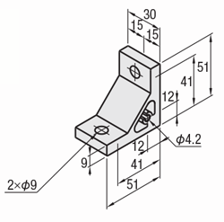 ■ 8 ซีรีส์ (ความกว้างของร่อง 10 มม.) - สำหรับร่อง 1 แถว - เหล็กฉาก 90 องศาแบบอัดขึ้นรูป