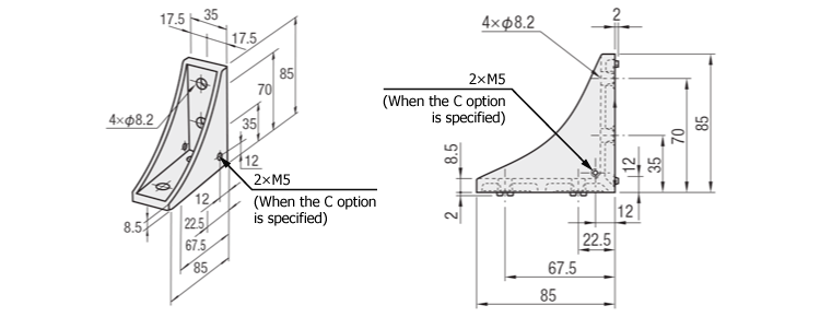 ■ การประมวลผลรูสำหรับการติดตั้งฝาครอบ (-C) ของเหล็กฉาก 90 องศา