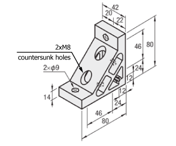 ■ ซีรีส์ 8-45 (ความกว้างของร่อง 10 มม.) - สำหรับร่อง 1 แถว - เหล็กฉาก 90 องศาแบบอัดขึ้นรูป