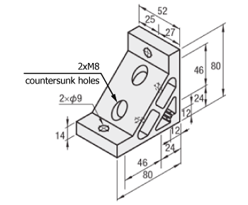 ■ ซีรีส์ 8-45 (ความกว้างของร่อง 10 มม.) - สำหรับร่อง 1 แถว - เหล็กฉาก 90 องศาแบบอัดขึ้นรูป