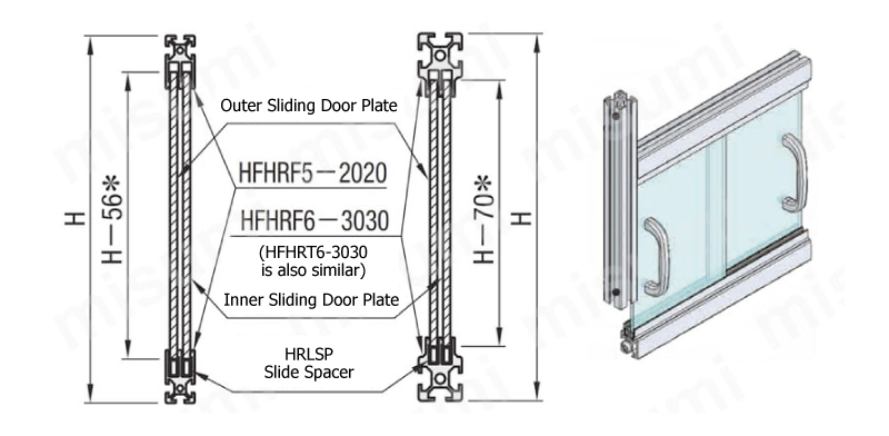![]() [M] วัสดุของ รางเลื่อนประตู: A6N01SS-T5 [S] การเคลือบผิว: อโนไดซ์ | ![]() [M] วัสดุของ รางเลื่อนประตู: SPCC [S] การเคลือบผิว: ชุบนิกเกิล | ![]() [M] วัสดุของ รางเลื่อนประตู: โพลีเอทิลีน (สีดำ) ทนความร้อน: -45 ถึง 80°C |