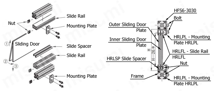 | HRLFL | HRLPL6(รวมราง รางเลื่อนประตู และโครงรองรับ) | HRLSP | ||