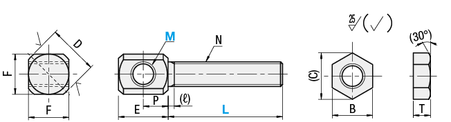 | เกลียวหยาบ | เกลียวละเอียด | [ M ] วัสดุ | [ S ] กระบวนการชุบผิว | ||