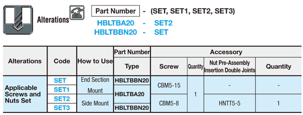 [ ! ] สกรูที่ให้มาจะไม่เป็นไปตามมาตรฐาน RoHS หากระบุด้วย -SET□