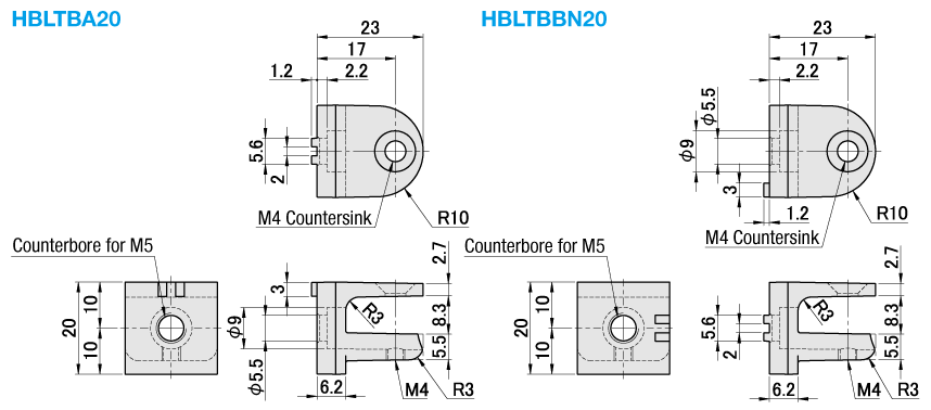 | HBLTBA20 | ทรงสี่เหลี่ยม 20 (HFS5) | 10.8 | M4x6 | ||