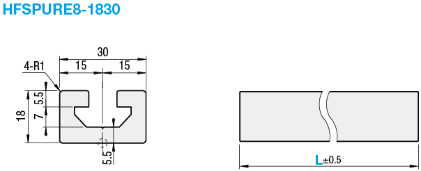 เฟรมชนิดแบน 18 มม. × 30 มม. [คุณสมบัติ] รูปทรงร่องสำหรับนัทซีรีส์ 8