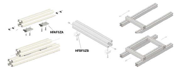 [ ! ]จัดวางเฟรมอะลูมิเนียมให้ขนานกัน และติดตั้ง รางเลื่อนประตู เชื่อมระหว่างเฟรมตัวอย่างการใช้งานร่วมกันของ รางเลื่อนประตู กับเฟรมอะลูมิเนียม