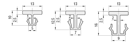 | รุ่นของ รางเลื่อนประตู | ความยาว ระบุเป็นหน่วยละ 1 มม. | เฟรมที่ใช้งานร่วมกันได้ (ซีรีส์) | น้ำหนัก กก./ม. | ราคาต่อเมตร (หน่วยฐาน) | |