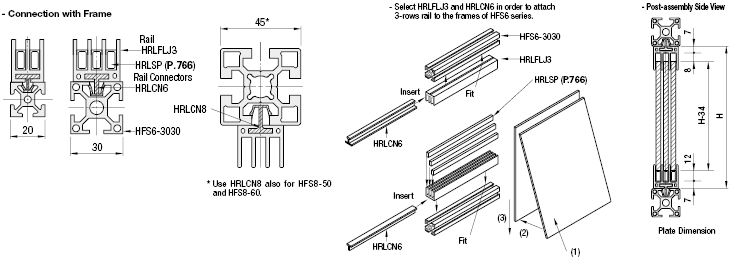 ชิ้นส่วนเชื่อมต่อที่จำเป็นสำหรับใช้เชื่อมต่อรางเลื่อน HRLFLJ เข้ากับอลูมิเนียมเฟรม