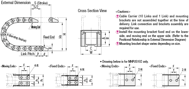 | รางกระดูกงู + เหล็กฉากสำหรับยึด | MHPUS | ไนล่อน 6 + ไฟเบอร์กลาส 20% (อุณหภูมิใช้งาน -10 to 80°C) มาตรฐาน การติดไฟเทียบเท่า UL94-HB | SPCC | การชุบโครเมตไตรวา ไตรวาเลนท์ กระบวนการชุบผิวไบร์ทโครเมี่ยม |