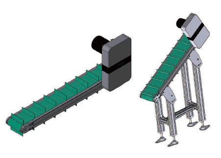สายพานลำเลียงชนิดนี้มาพร้อมกับแผ่นกั้นเพื่อป้องกันไม่ให้สินค้าล่วงในกรณีที่มีการขนถ่ายสินค้าผ่านที่ลาดชัน มีให้เลือกหลายขนาดเพื่อให้เหมาะกับความต้องการ