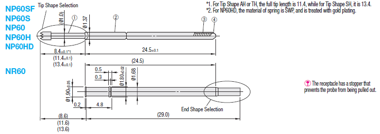 หัวเข็มโพรบแบบการสัมผัสและเต้ารับ - ซีรีส์ 60