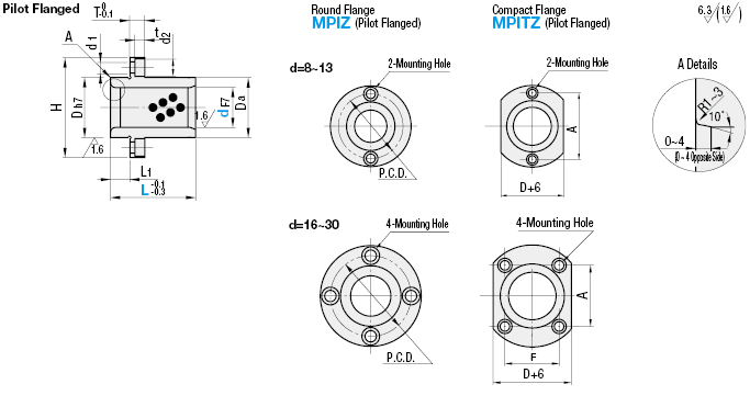 - ออยฟรีบุชในตัวหน้าแปลน - โลหะผสมทองแดง, ชนิดหน้าแปลนไพล็อต, ซีรีส์ MPIZ / MPITZ จาก MISUMI