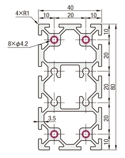 ● พื้นที่หน้าตัด: 40 × 80 มม. , จำนวนร่อง 2 X 4