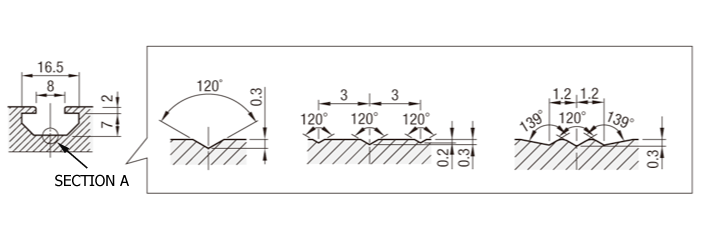 [ ! ]อลูมิเนียมโปรไฟล์ พื้นผิวที่ตัดและบริเวณที่มีการกลึงเพิ่มเติมจะไม่ได้รับการปรับพื้นผิว
