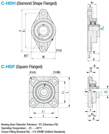 ตลับลูกปืนเม็ดกลม - หน้าแปลนแบบเหลี่ยม/ค่า C