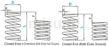 * ความยาวแข็งตัวเป็นค่าอ้างอิง หากใช้งานต่ำกว่าค่าเงื่อนไขที่จำกัดของความยาวแข็งตัว สปริงอาจเสียรูปหรือเกิดความเสียหายหลังจากการใช้งานเพียงไม่กี่ครั้ง ดังนั้น กรุณาใช้ภายในช่วงระยะการยืด-หดที่ยอมรับได้ Fmax. (มม.)