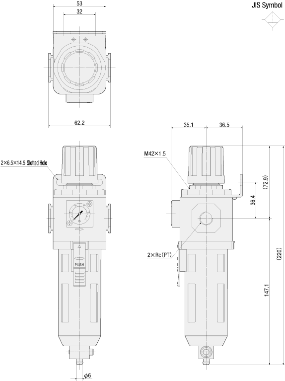 ตัวควบคุมแรงดันพร้อม ตัวกรองลม - ชนิด B