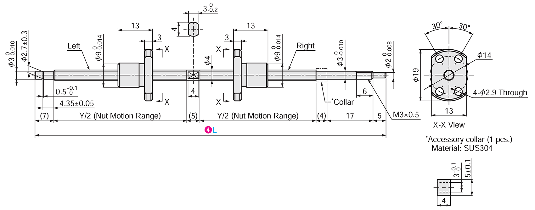 บอลส สกรู งานละเอียด ด้านซ้ายและขวา - ขนาดเส้นผ่านศูนย์กลางเพลา 4; สายนำไฟฟ้า 1 - เกรด ความแม่นยำ C5