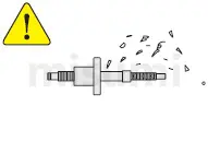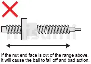 ● อย่าปล่อยให้ น๊อตตัวเมีย เกินระยะการเคลื่อนที่ของ บอลสกรู น๊อตตัวเมีย หรือ สกรู ออกจาก เพลา สกรู ไม่เช่นนั้นบอลจะหลุดออกและชิ้นส่วนที่หมุนของบอลจะเสียหาย