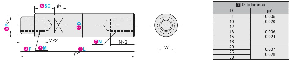 ![]() | NSC | เปลี่ยนเกลียวในเป็นเกลียวละเอียด วิธีการระบุสเปค NSC14 (เปลี่ยน N เป็น NSC) เงื่อนไขการใช้งาน ใช้ได้กับ D ≥ 12 |