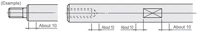 ![]() | (2) ความแข็งลดลงในบริเวณที่ผ่านการกลึง หลังจากการชุบแข็งฐานรอง/แผ่นรองแล้ว การกลึงอาจทำให้บางบริเวณสูญเสียความแข็งเนื่องจากการอบอ่อน: - เกลียวนอกทั้งหมด - ทุกขั้น -ชนิดเกลียวใน: เมื่อ M ≥ D/2, ชนิดเกลียวในแบบรูคู่, ผลิตภัณฑ์ชุบฮาร์ดโครมที่ทำจาก SUS440C หรือเหล็กกล้าไร้สนิมที่มีความแข็งสูงและทนต่อการกัดกร่อนในระดับเทียบเท่า -การกลึงเพิ่มเติมสำหรับร่องประแจ (SC-WSC-SX) -การกลึงเพิ่มเติมสำหรับผิวเรียบ (FC-WFC) -การกลึงเพิ่มเติมสำหรับร่อง V (VC-WVC) -ยกเว้นชนิดที่ชุบแข็งเต็มความยาว |