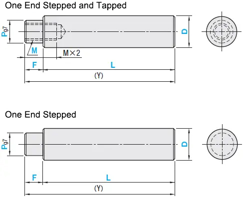 | ปลายขั้นบันไดข้างหนึ่ง ชนิดมีรูต๊าปเกลียว (ค่าพิกัดความเผื่อ D g7) E-SFAG E-SSFAG E-PSFAG E-PSSFAG (ค่าพิกัดความเผื่อ D f8) E-PSFGG ชนิดขั้นบันไดด้านเดียว D ความเผื่อ g7 E-SFAC E-SSFAC E-PSFAC E-PSSFAC (ค่าพิกัดความเผื่อ D f8) E-PSCGC | 10 | 25 ถึง 998 | 6 ถึง 8 | 3 | 4 | 5 | 1000 | |||||||||