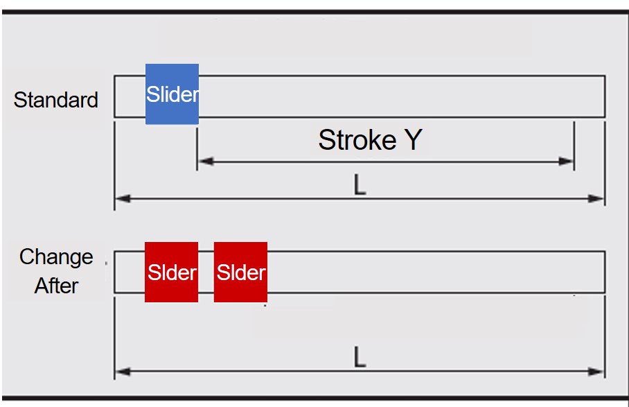 หลังจากระบุจำนวนแถบเลื่อนแล้ว จำนวนโฟโต้ไมโคร เซนเซอร์ บน ฐานรอง/แผ่นรอง หัวขับวาล์ว/ แอคชูเอเตอร์ จะเปลี่ยนจาก 3 เป็น 4 ตัว และแถบเลื่อนเพิ่มเติมจะติดตั้งโฟโต้ไมโคร เซนเซอร์ ป้องกันการชนกันตัวอย่าง) ดังแสดงในรูปด้านล่าง เซนเซอร์ จะเปลี่ยนเมื่อเลือกจำนวนแถบเลื่อน (2 ชิ้น)