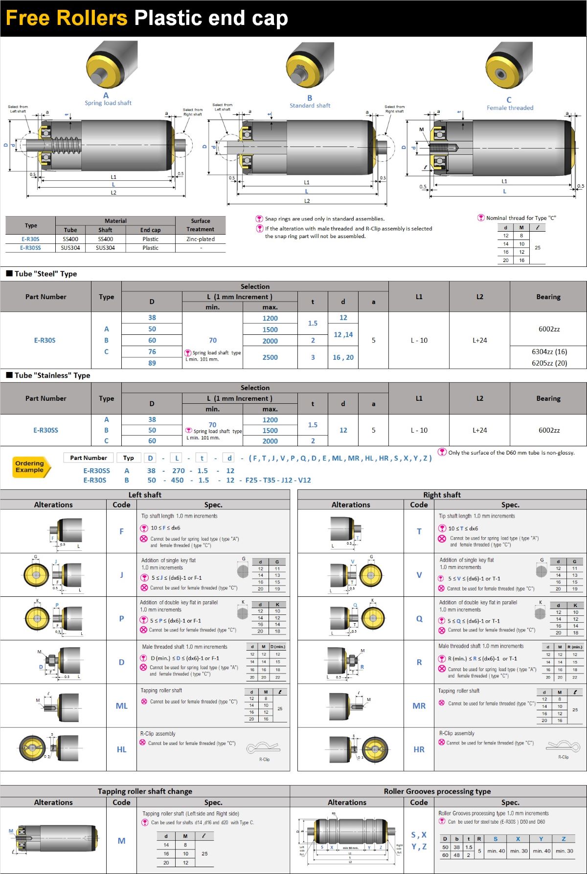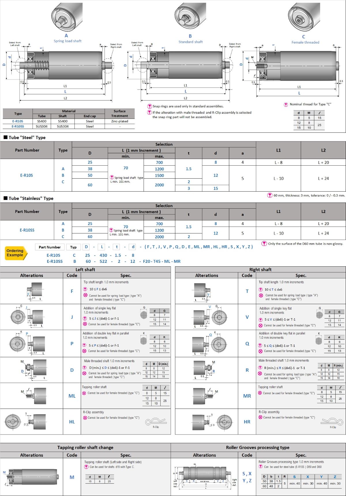 ลูกกลิ้งลำเลียงแบบไม่ใช้กำลังขับ แบบปรับความยาวและเพลาได้อิสระ รับน้ำหนักได้ดี สามารถรับวัสดุน้ำหนักเบาถึงปานกลาง ใช้สำหรับอุตสาหกรรมอาหารและธุรกิจอื่น ๆทั่วไป (วัสดุเหล็กกล้าและสเตนเลส)