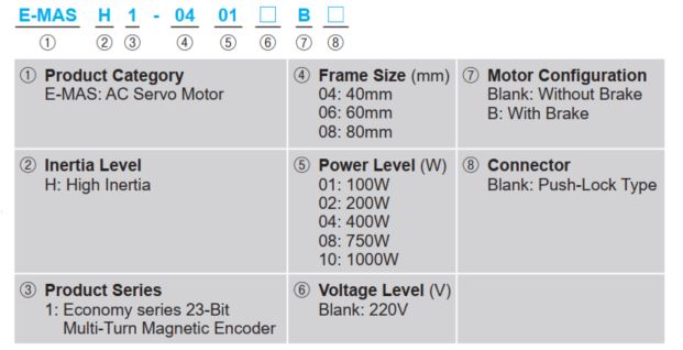 | สเปคมอเตอร์ | E-MASH1-0401(B) | E-MASH1-0602(B) | E-MASH1-0604(B) | E-MASH1-0808(B) | E-MASH1-0810(B) |