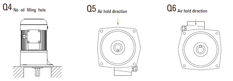 ตำแหน่งกล่องเทอร์มินอลEA-HN (การติดตั้งกับขา) EA-VN (การติดตั้งกับหน้าแปลน) | ![]() | ![]() | ![]() | ![]() |