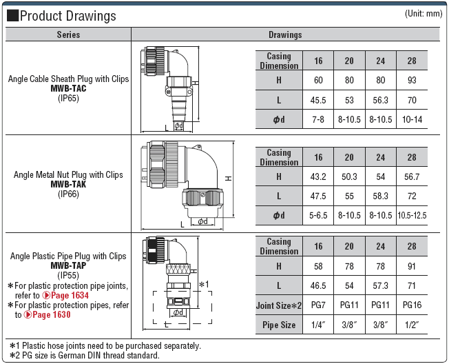 · ในดรออิ้งผลิตภัณฑ์, ⌀d เป็นเพียงค่าอ้างอิง จึงไม่มีการรับประกัน เมื่อเลือกสายเคเบิล ควรสังเกตขนาดของผลิตภัณฑ์จริง