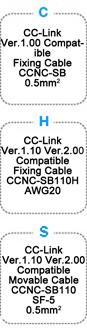 ●สามารถเลือกประเภท สายไฟ สามประเภท ได้แก่ สายไฟ ยึดอยู่กับที่ รองรับการใช้งาน กับ cc-link เวอร์ชัน 1.00, สายไฟ ยึดอยู่กับที่ รองรับการใช้งาน กับเวอร์ชัน 1.10 และ สายไฟ เคลื่อนย้าย รองรับการใช้งาน กับเวอร์ชัน 1.10