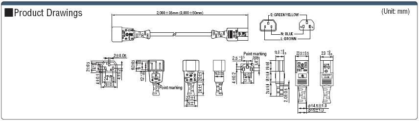 สายพาวเวอร์คอร์ด มาตรฐานเยอรมัน พร้อมปลั๊กและซ็อกเก็ต C13 มาตรฐาน VDE ที่ปลายทั้งสองด้าน ใช้งานได้ที่พิกัด 10 A - 250 V โดยใช้งานร่วมกับตัวยึดโลหะกันสายหลุด