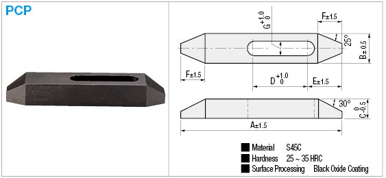 | หมายเลขชิ้นส่วน | ลำดับที่ | รุ่น | ใช้งานได้ น็อตตัวผู้ | A | B | C | D | E | F | G | น้ำหนัก แคลมป์ยึด ดับด้วย HRC 30 ± 5 ซึ่งมี วัสดุ คือ S45C |