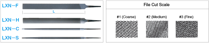 | LXN-F | ![]() | แบบแบน | 150 | 1 (หยาบ) 2 (ปานกลาง) 3 (ละเอียด) | 15 x 3.8 |
