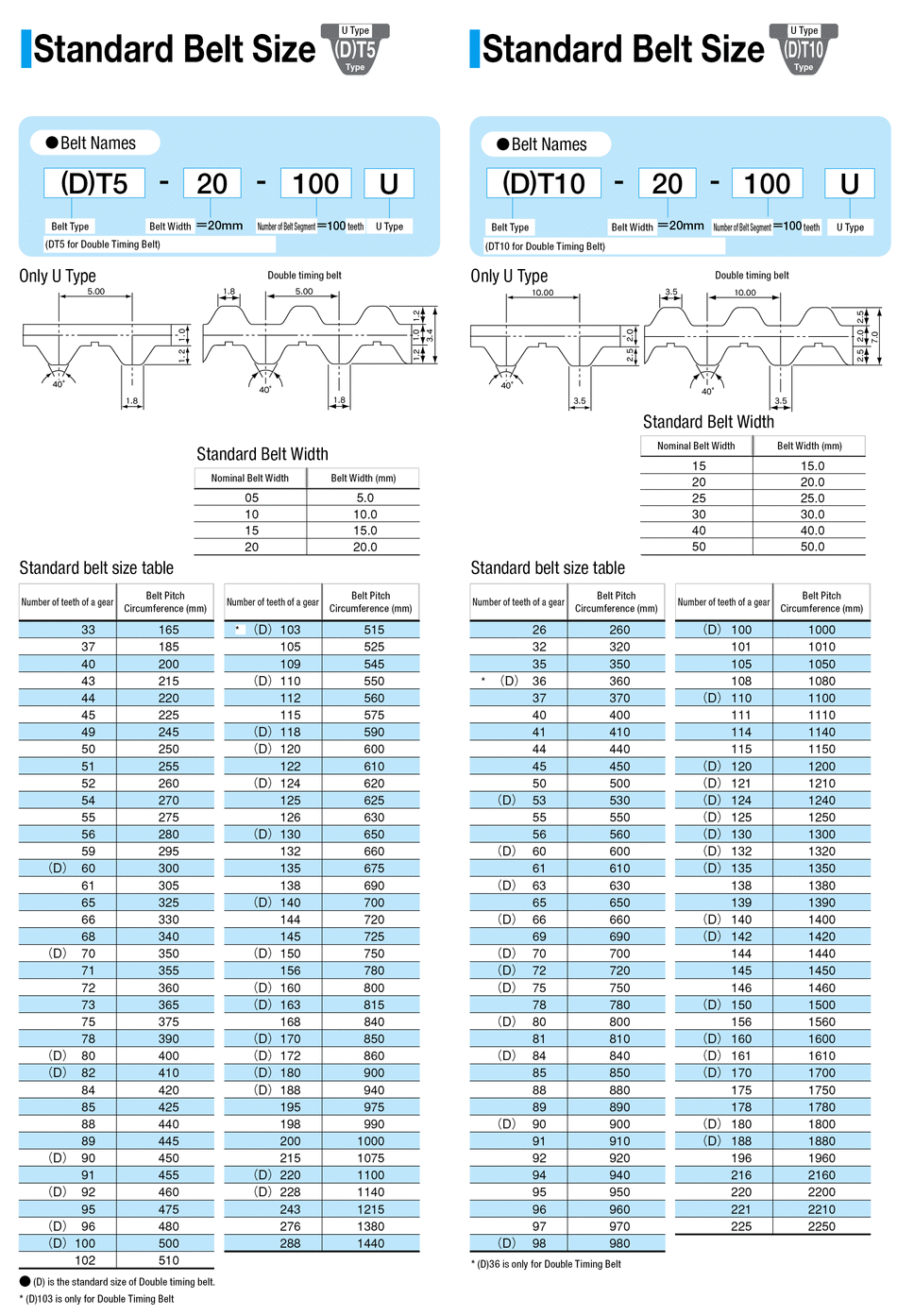 สายพานไทม์มิ่งชนิดมาตรฐานที่เป็นไปตามมาตรฐาน JIS และ ISO