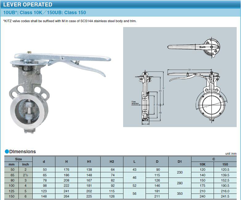 10UB, วาล์วปีกผีเสื้อ 10K สเตนเลสหล่อชนิดเวเฟอร์