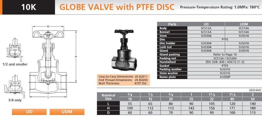 KITZ, โกลบวาล์ว, โกลบวาล์วสแตนเลสอเนกประสงค์ชนิดเกลียวใน รุ่น 10 K