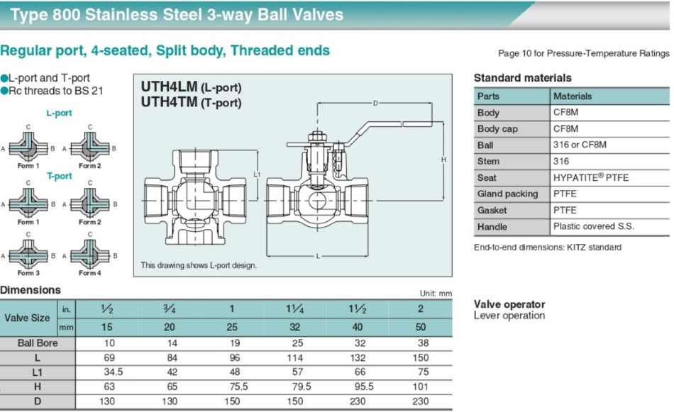 UTH4LM/UTH4TM, บอลวาล์วสเตนเลสหล่อ Type 800