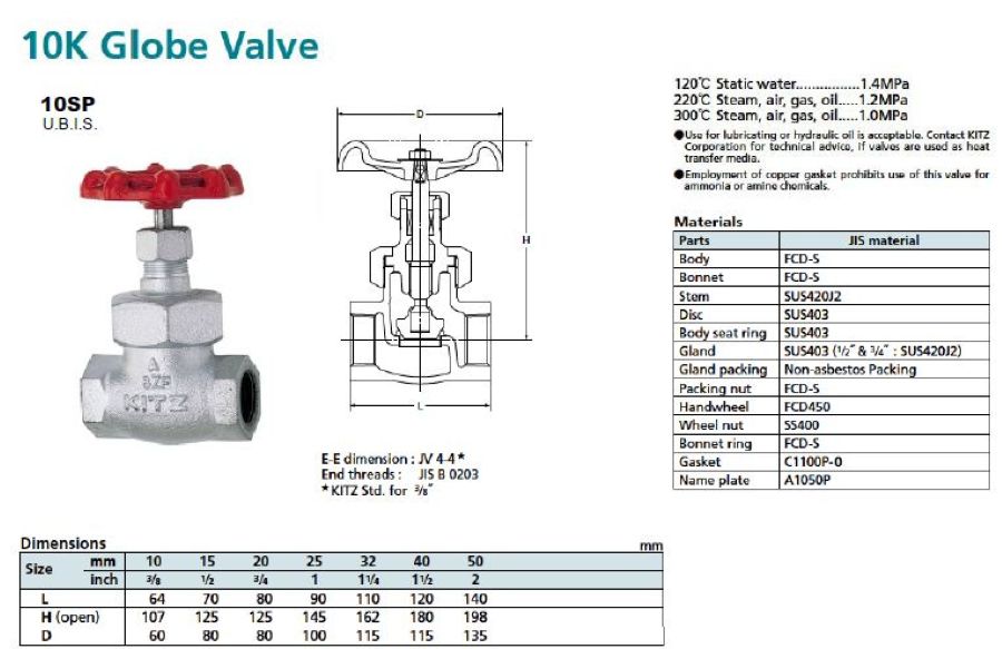 10SD/SJ/SP, โกลปวาล์วเหล็กหล่อเหนียว ชนิด 10K