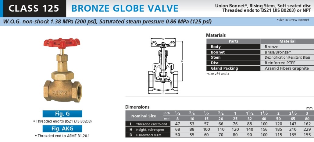 G, Class 125 โกลปวาล์วบรอนซ์หล่อ