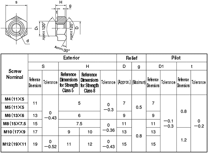 น็อตเชื่อมแบบหกเหลี่ยม (น็อตเชื่อม) แบบมีไพล็อต (ประเภท 1A)