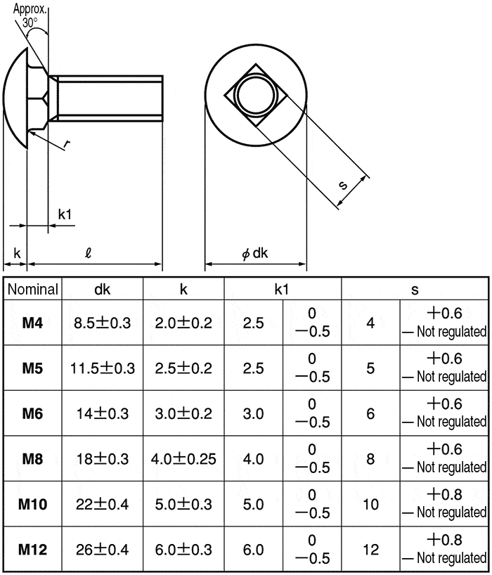 โบลท์ที่มีด้านหลังหัวกลมเป็นแบบสี่เหลี่ยมจัตุรัส