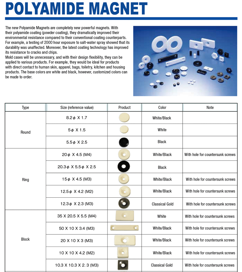 · แม่เหล็กนีโอดิเมียมที่เคลือบผิวด้วยโพลีเอไมด์ (การพ่นสีฝุ่น) มีความแข็งแกร่งชนิดที่ไม่เคยมีมาก่อน