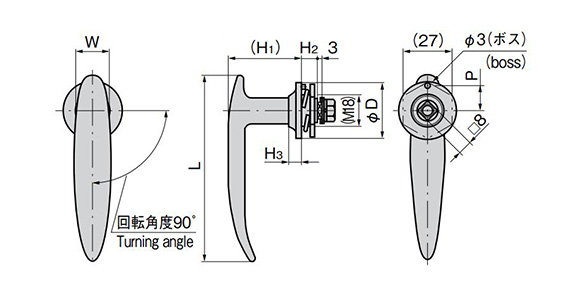 | หมายเลขผลิตภัณฑ์ | L | W | (H1) | H2 | H3 | P | ⌀D | ความหนาของแผงที่ใช้งานได้ | น้ำหนักสินค้า (g) |